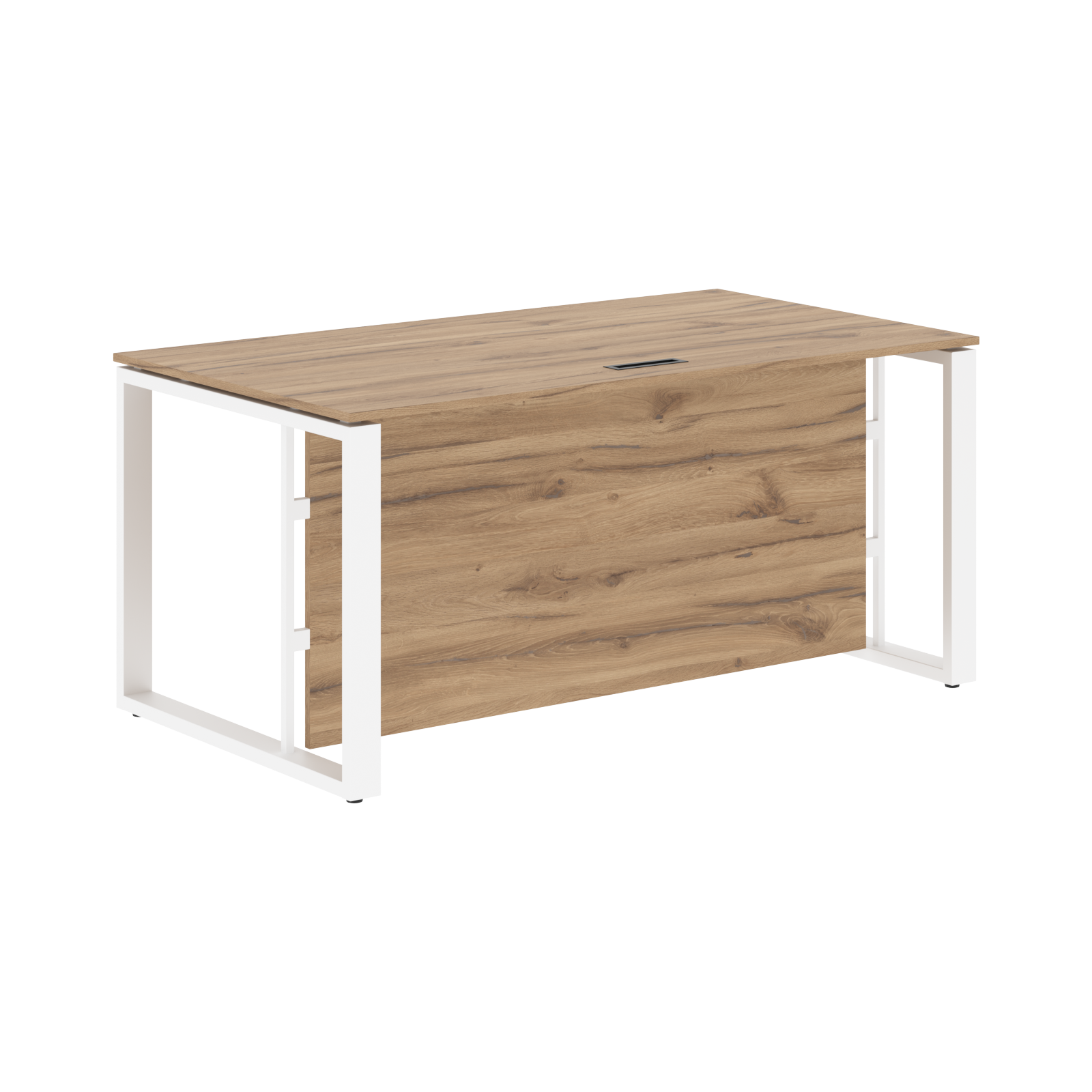Две траверсы металлические крашенные из профиля трубы 40х25х2мм. Стол комплектуется высокой фронтальной панелью из ЛДСП т.18мм, h= 646мм с кромкой ПВХ т. 0,45мм.
