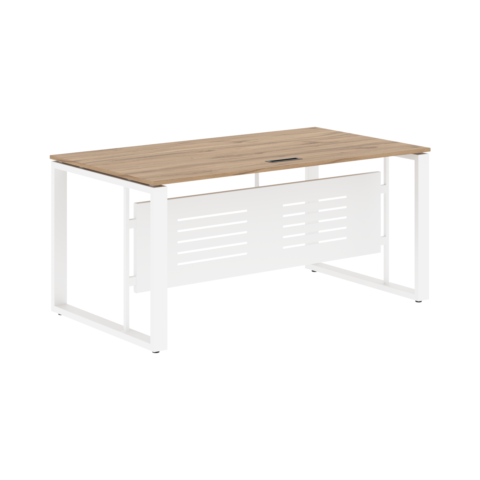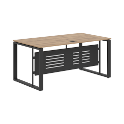 Стол комплектуется короткой фронтальной панелью из металлического листа толщиной 1,5мм с перфорацией, h=400мм. Крепление фронтальной панели при помощи кронштейнов к опоре стола.