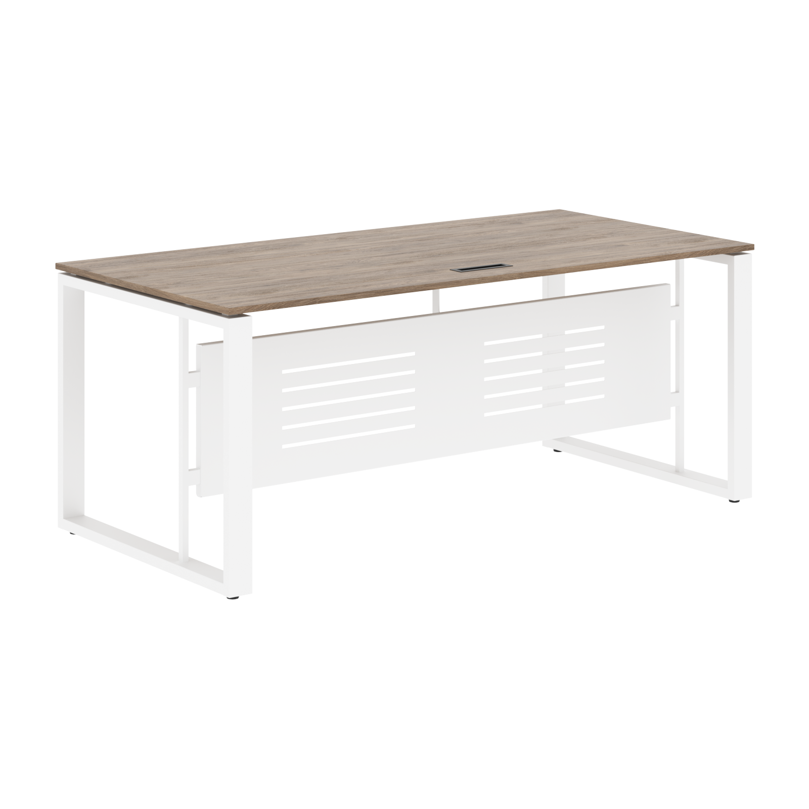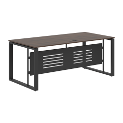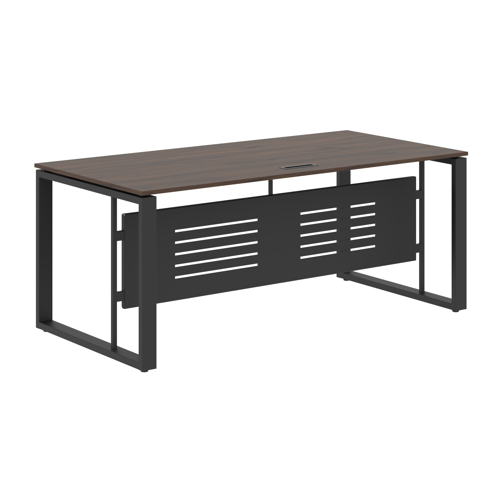 Стол комплектуется короткой фронтальной панелью из металлического листа толщиной 1,5мм с перфорацией, h=400мм. Крепление фронтальной панели при помощи кронштейнов к опоре стола.