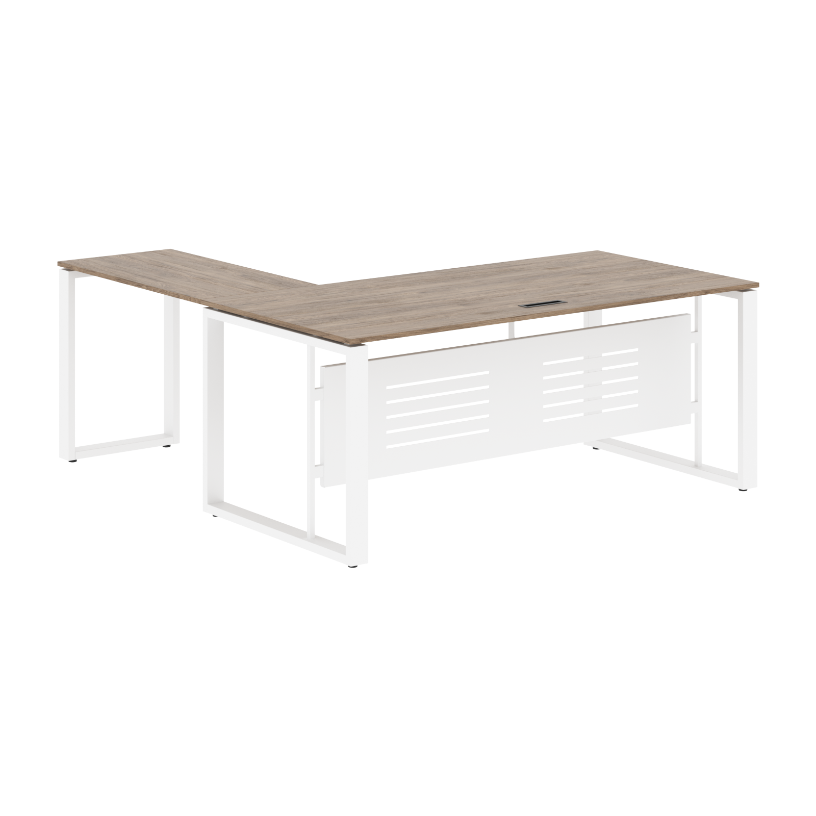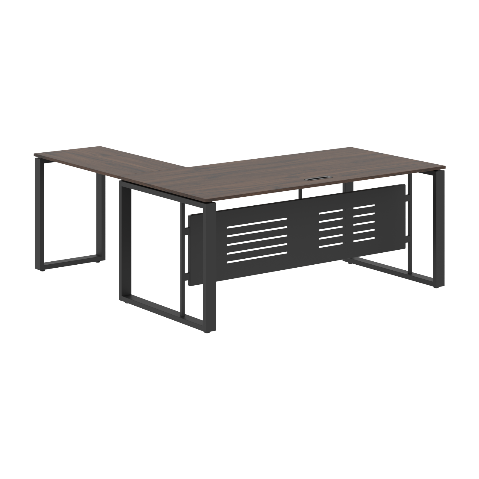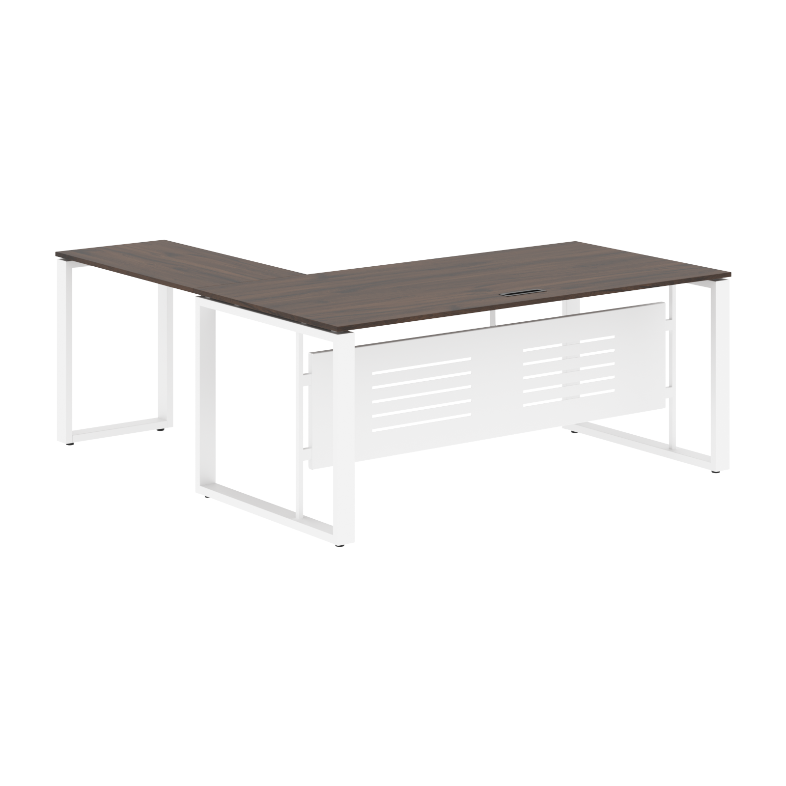 Стол комплектуется короткой фронтальной панелью из металлического листа толщиной 1,5мм с перфорацией, h=400мм.