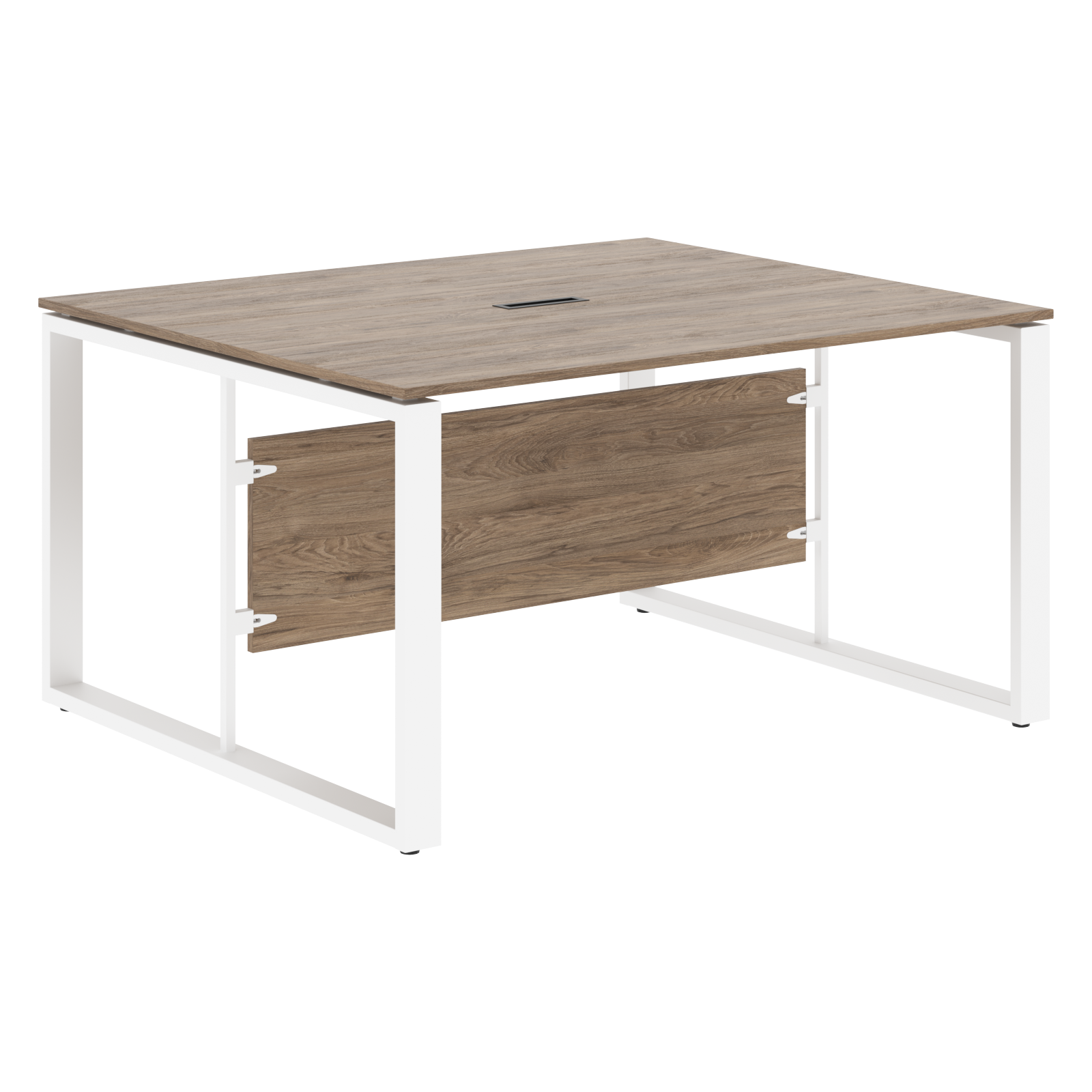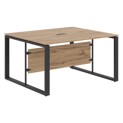 Промежуточные опоры с регулировкой по высоте. Каждая столешница комплектуется двумя металлическими крашенными траверсами из профиля трубы 40х25х2мм и короткой фронтальной панелью из ЛДСП т.18мм, h=400мм с кромкой ПВХ т.0,45мм по периметру.
