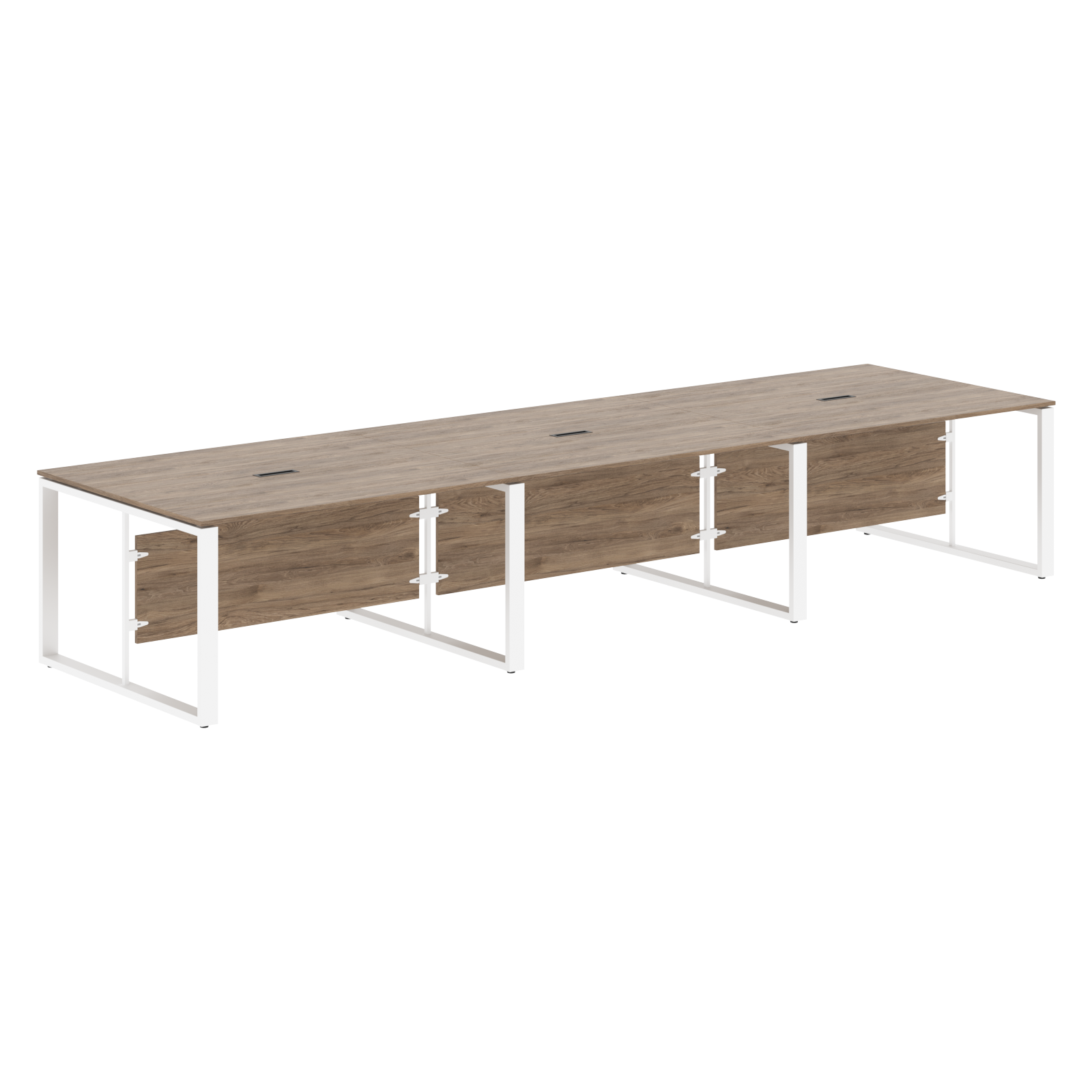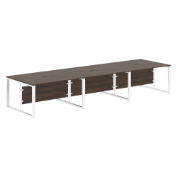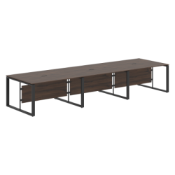 Промежуточные опоры с регулировкой по высоте. Каждая столешница комплектуется двумя металлическими крашенными траверсами из профиля трубы 40х25х2мм и короткой фронтальной панелью из ЛДСП т.18мм, h=400мм с кромкой ПВХ т.0,45мм по периметру.