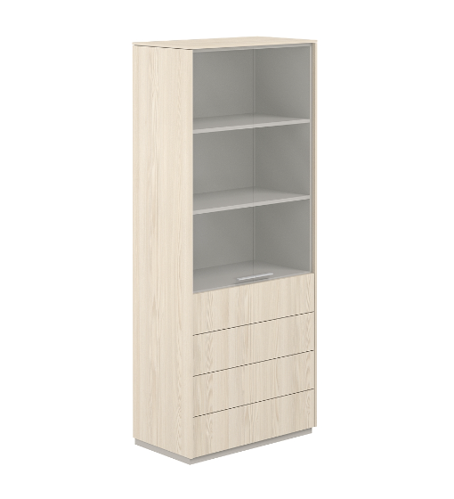 NZ-0302.YN.YN / Шкаф высокий со стеклом прозр., 4 ящ., обвязка YN, фасады YN / 824х450х1976, обвязка YN, фасады YN, стекло прозрачное GL