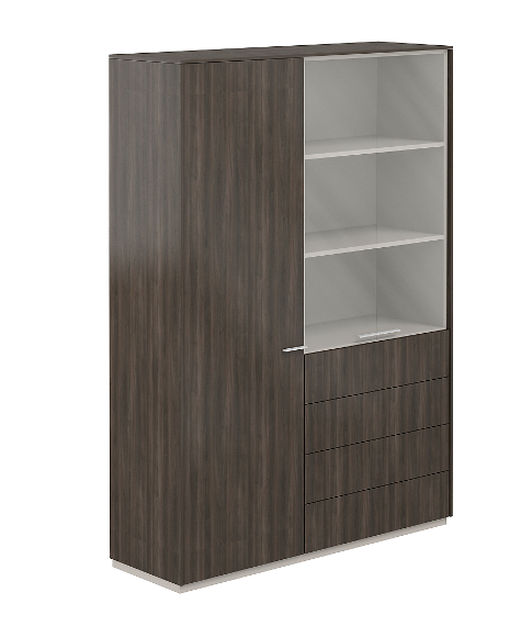 NZ-0303+NZ-0302.BT.BT / Шкаф для одежды 600 + Шкаф высокий 800 со стеклом прозр., 4 ящ., обвязка BT, фасады BT / 1424х450х1976, обвязка BT, фасады BT, стекло прозрачное GL