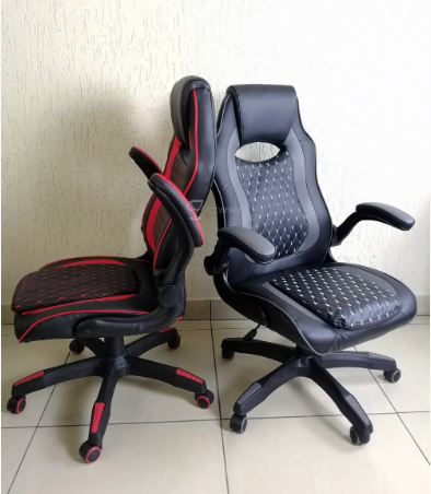 Кресло Barneo K-37 черная кожа/красные вставки, черная кожа/серые вставки
