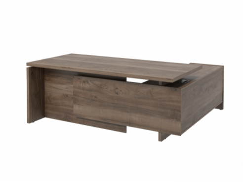 Столешница, бок стола и бок тумбы выполнены из ЛДСП толщиной 38 мм. Цвет - "Орех Пацифик Табак". Кромка 2 мм.