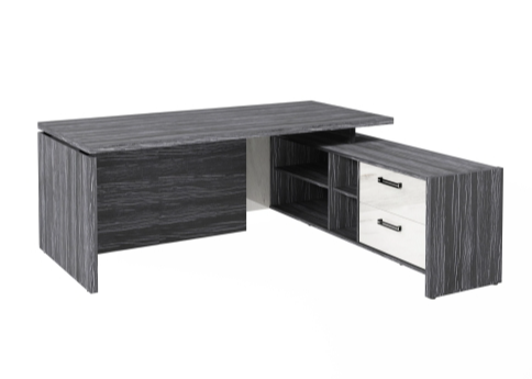 Столешница, бок стола и бок тумбы выполнены из ЛДСП толщиной 38 мм. Цвет - "Древесина Графит". Кромка 2 мм.