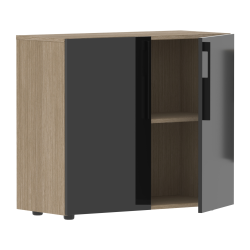 Каркас из МДФ т.18 мм, облицован шпоном с защитно-декоративным покрытием. Полки из ЛДСП т.18 мм, торцевые поверхности защищены кромкой ПВХ т.1мм в цвет. Фасады из МДФ т.18мм с защитно-декоративным покрытием "высокий глянец".