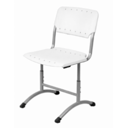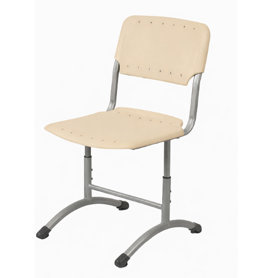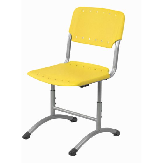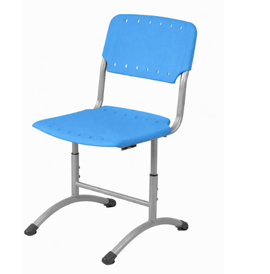 Стул изготовлен на металлокаркасе из тонкостенных стальных труб круглого сечения ⌀32х1,5 мм, ⌀32х1,2, ⌀25х1,2 и ⌀22х1,0 мм, а так же плоскоовального сечения 30х15х1,2 мм. Металлокаркас окрашен защитной полимерно-порошковой эмалью. Каркас представляет собой телескопическую конструкцию, высоту его можно устанавливать в трёх положениях, закрепляя четырьмя винтами М8. Концы труб закрыты пластиковыми заглушками и заглушками-опорами. Сиденье и спинка выполнены из пластика. Форма сиденья и спинки способствует сохранению осанки. Соединение каркаса с пластиковым сиденьем осуществляется с помощью 2-х винтов М6, спинка плотно надевается на каркас без дополнительного крепления. Стул изготавливается в двух ростовых группах в трех диапазонах регулирования (3-5, 5-7) в соответствии с ГОСТ 11016-93