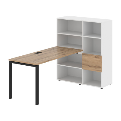 Столешница глубиной 670мм, комплектуется регулируемой опорой П-образной формы из профиля трубы 60х30, комплектом телескопических траверс и двумя кронштейнами для крепления к стеллажу. Каркасы стеллажей полностью из ЛДСП т.18мм с кромками ПВХ т.2 и 0,45мм, задняя стенка из ЛДСП. Комплектуется малой дверью в цвет столешницы и регулируемыми опорами h= 27мм.