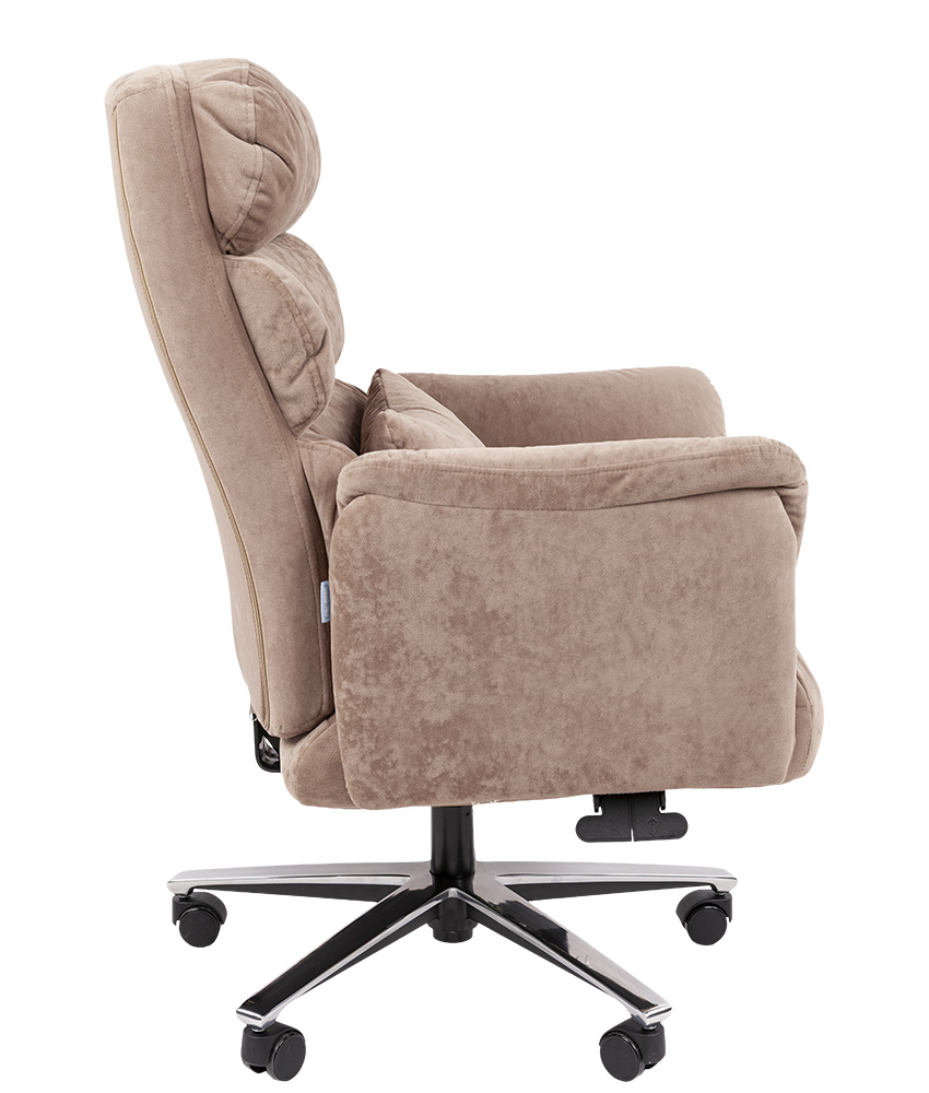 CHAIRMAN 433 ДОМ – это оригинальное и, разумеется, максимально комфортное и представительное кресло для кабинета руководителя или для домашнего офиса. Под обивкой из износостойкого велюра классического бежевого или оригинального серого цвета – максимум мягкости, а современный механизм качания (с синхронным отклонением сиденья и спинки 1:3) и регулировка высоты с кнопок под подлокотником обещают максимально простую настройку этой мягкости под параметры пользователя.