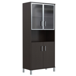 Шкаф высокий с малыми стеклянными дверьми в AL рамке и глухими 430.9