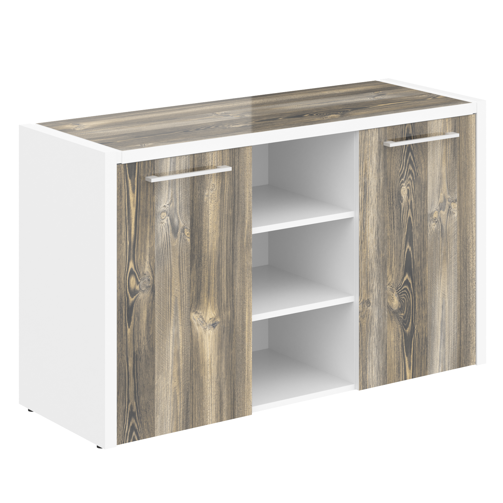 Изделие из 3-х секций: секция с полкой, секция открытая с полками, секция под холодильник. Топ и фасады глянцевые. Каркас в цвете венге. Внутренний размер под холодильник 450х450х771мм.