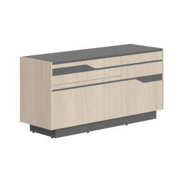 Комод с распашной дверью и двумя выдвижными ящиками. Каркас из ЛДСП т.18мм, кромка ABS т.0.8мм. Декоративные боковые стенки тумбы - из МДФ т.12мм, покрытие - шпон. Фасады - из МДФ т.19мм, покрытие - шпон, с декоративным фигурным рисунком. Ящики из ЛДСП, скрытые шариковые направляющие полного выдвижения с системой открывания "push to open".