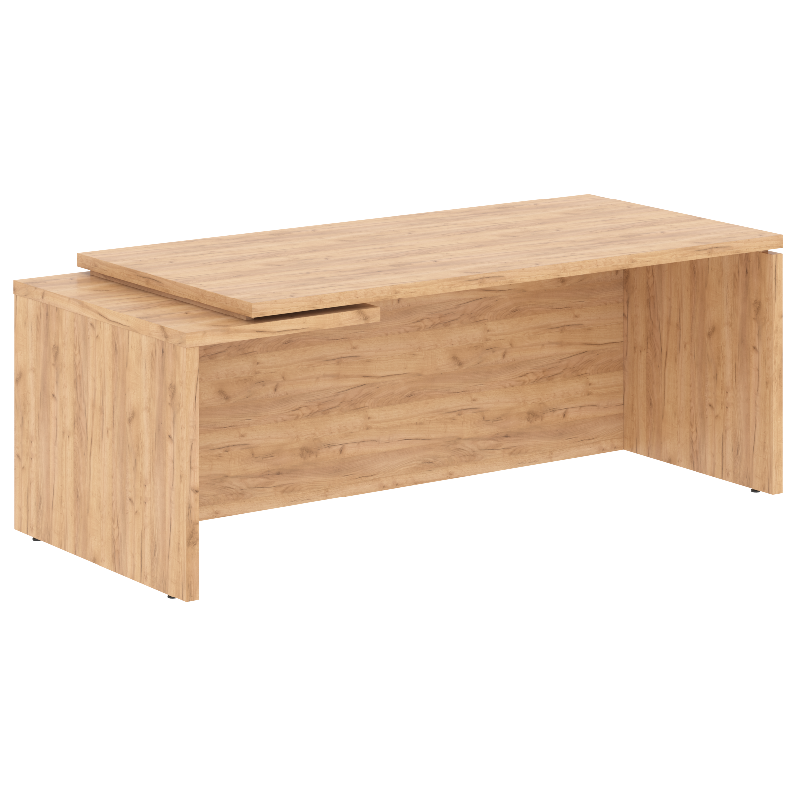 Столешница и опоры из ЛДСП толщиной 38мм с кромкой ПВХ т.2мм в цвет ЛДСП, расположение левое, правое. Стол комплектуется регулируемыми опорами. Фронтальная панель до пола h=640мм.