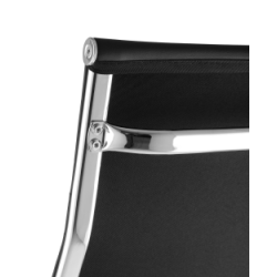 Сиденье и спинка кресла изготовлены из экокожи. Этот же материал используется для чехлов на подлокотниках. Крестовина и подлокотники выполнены из хромированного металла.
