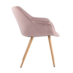 Стильный и мягкий кухонный стул имеет широкую эргономичную спинку и удобные подлокотники. Обивкой послужила высококачественная плотная ткань. Ножки металлические с принтом под дерево.