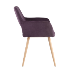 Стильный и мягкий кухонный стул имеет широкую эргономичную спинку и удобные подлокотники. Обивкой послужила высококачественная плотная ткань. Ножки металлические с принтом под дерево.