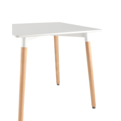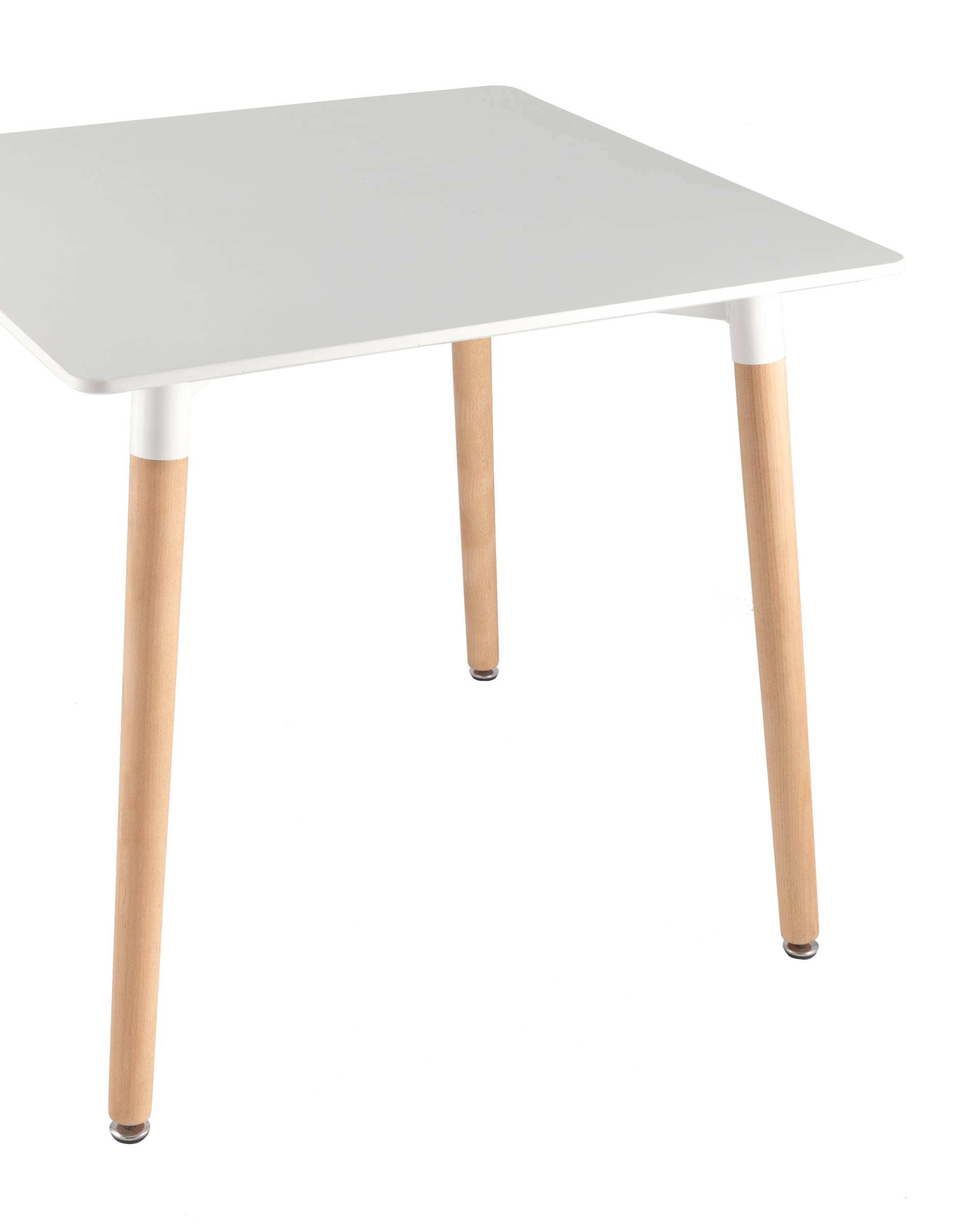 Стол изготовлен из высококачественного материала столешницей белого цвета из МДФ.Четыре ножки изготовлены из массива светлого бука.