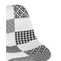 Стул кухонный из серии DSW в обивке из ткани, выполненной в технике пэчворк. Эргономичная спинка обеспечивает оптимальный комфорт.