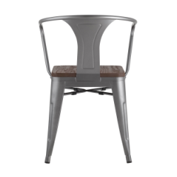 Стул Stool Group TOLIX с подлокотниками серебристый матовый + темное дерево, металлическое серебристое основание, оцинкованный металл с порошковым напылением, сиденье из натурального дерева