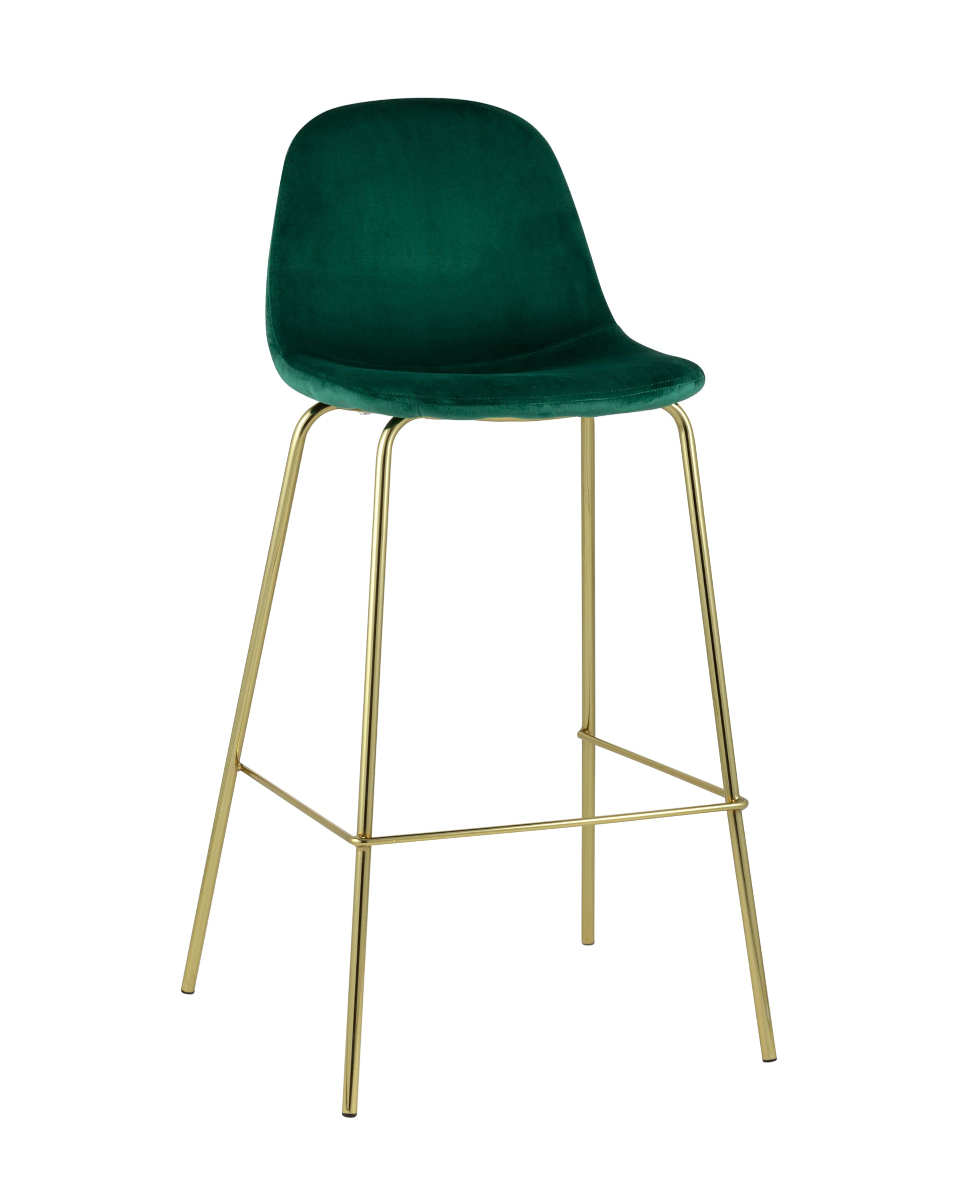 Стул барный Валенсия мягкий зеленый, обивка велюр, ножки золотые