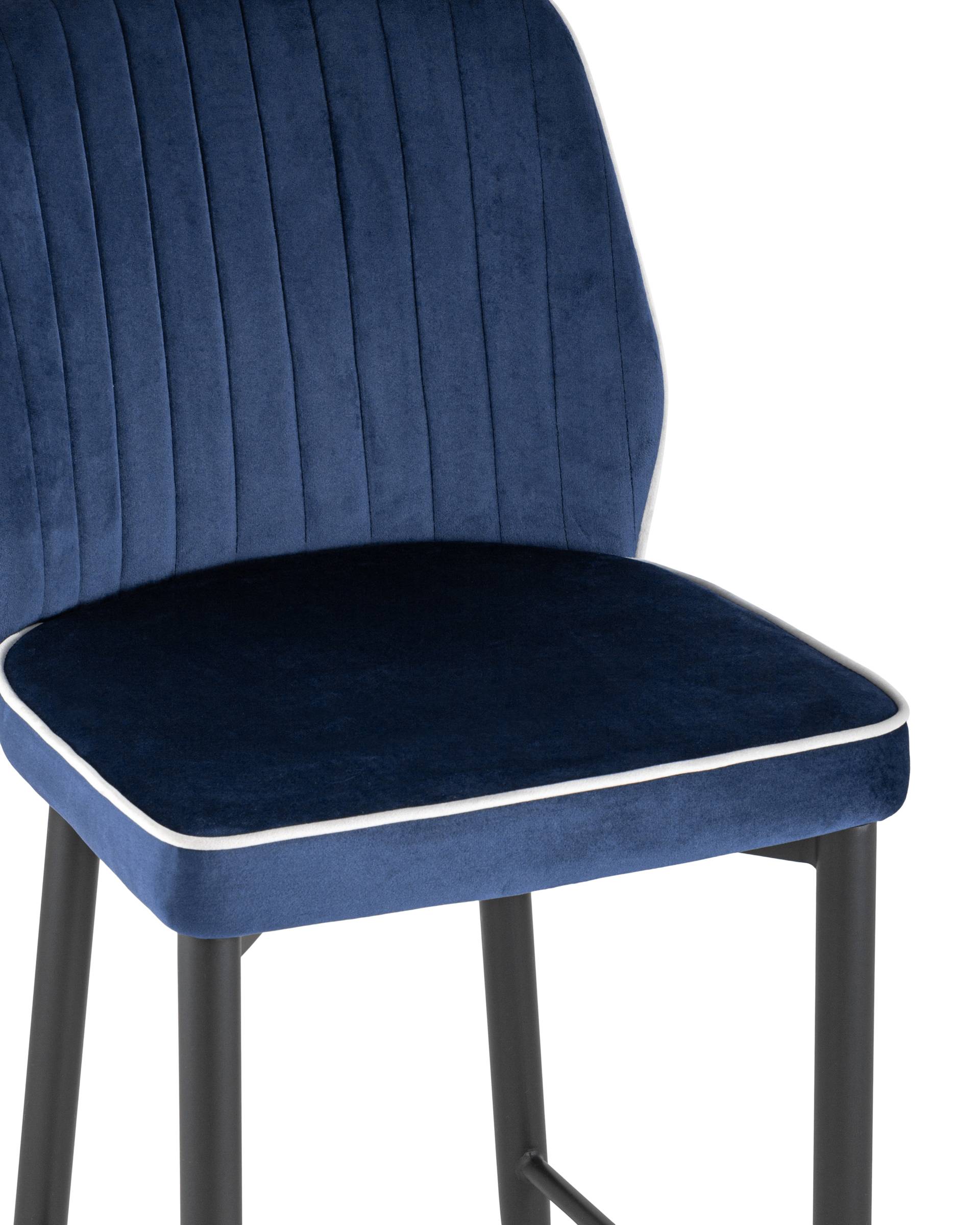 Стул полубарный Лоренс синий обивка велюр ножки металл черный с подножкой