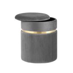 Пуф Миранда с ящиком велюр серый с декоративным золотым ободком