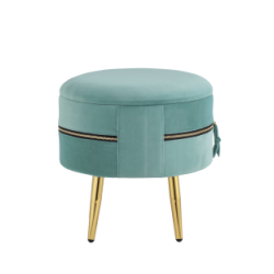 Оригинальный пуф, который дополнит интерьер спальни, прихожей или детской. Обивка выполнена из мягкого велюра с декоративной молнией. Под сиденьем имеется ящик для хранения различных мелочей. Ножки изготовлены из металла в золотом цвете. На них предусмотр