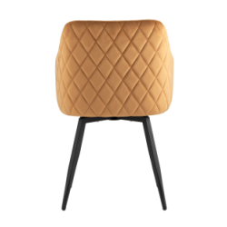 Мягкий стул с округлой спинкой анатомической формы и удобными подлокотниками подарит комфорт и уют. В качестве обивки используется велюр - прочный износостойкий и приятный на ощупь материал. Внешняя сторона спинки и подлокотников имеет декоративную строчку в виде ромбов.