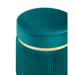 Пуф Миранда с ящиком велюр бирюзовый с декоративным золотым ободком