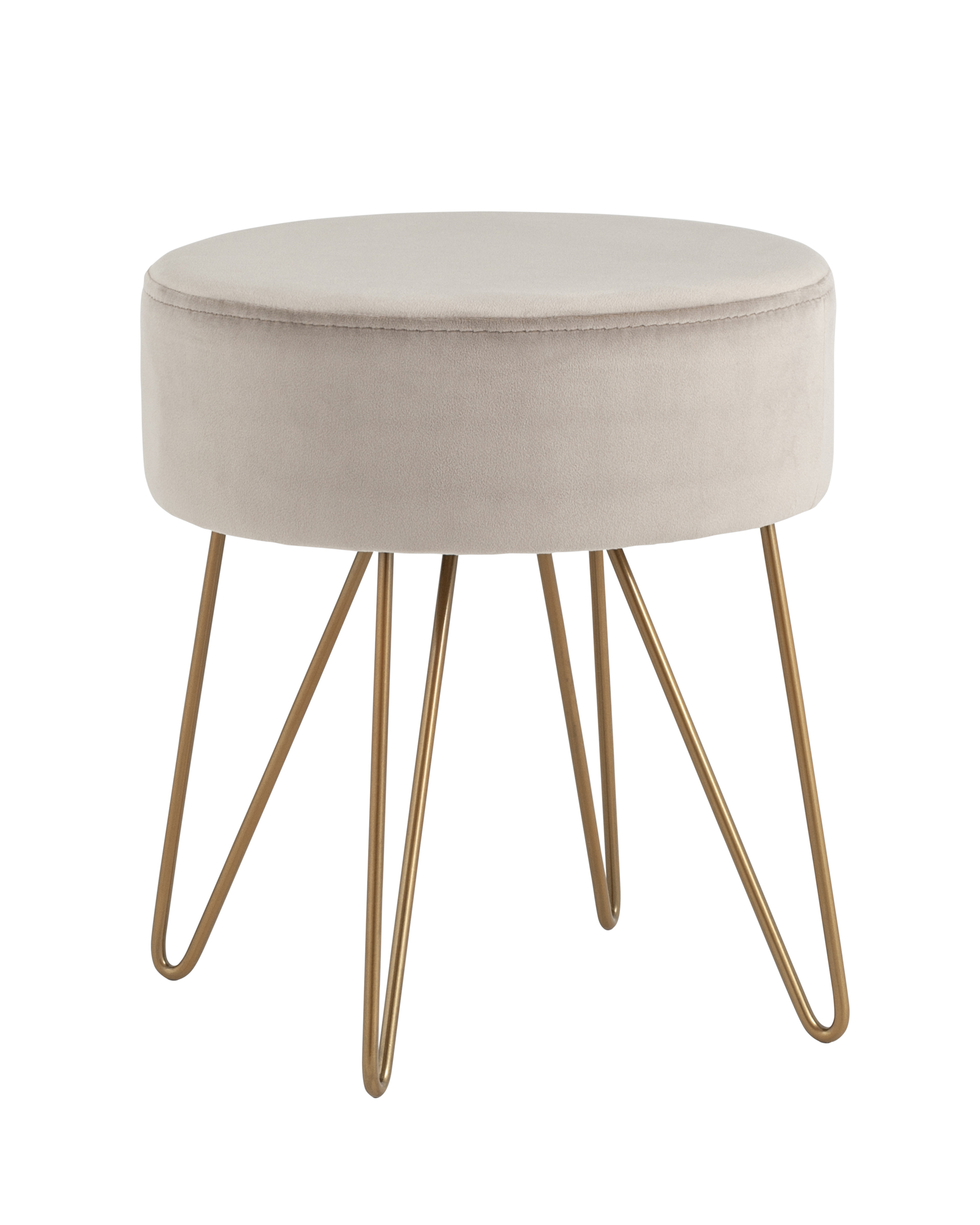 Мягкая обивка выполнена из износостойкого велюра, тактильно приятный и долговечный материал. Изогнутые металлические ножки высотой 27 см дополняют дизайн и придают пуфику изящный вид.