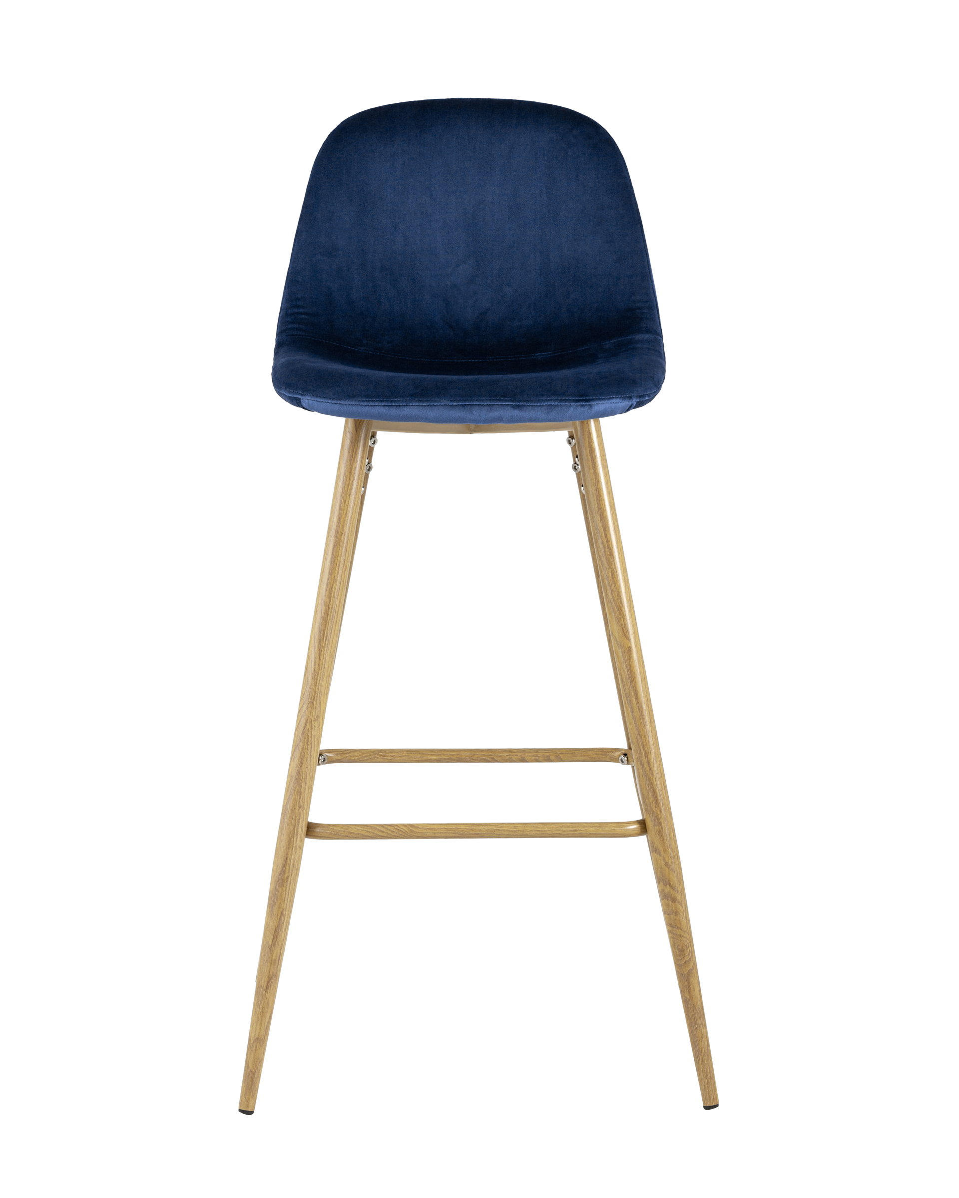 Стул барный Валенсия синий обивка из велюра ножки из металла стилизованные под дерево с подножкой