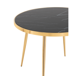 Стол обеденный Гелиос 100х100, стекло черный мрамор, ножки сталь золото