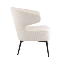 Современное комфортное кресло для отдыха и релакса. Обивка выполнена из велюра - износостойкий и простой в уходе материал. Внешняя сторона обивки выполнена с вертикальной строчкой. Сочетание мягкого сиденья шириной 61 см и эргономичной спинки с оригинальными подлокотниками, всё что необходимо для максимального комфорта. В качестве наполнителя в сиденье используются независимый пружинный блок по центру и мебельный поролон по краям. Независимые пружины обеспечивают ортопедический эффект и удобство, также при такой конструкции дольше сохраняется упругость сиденья и срок службы. Металлические ножки оснащены подпятниками, которые защищают напольные покрытия от царапин и препятствуют скольжению.