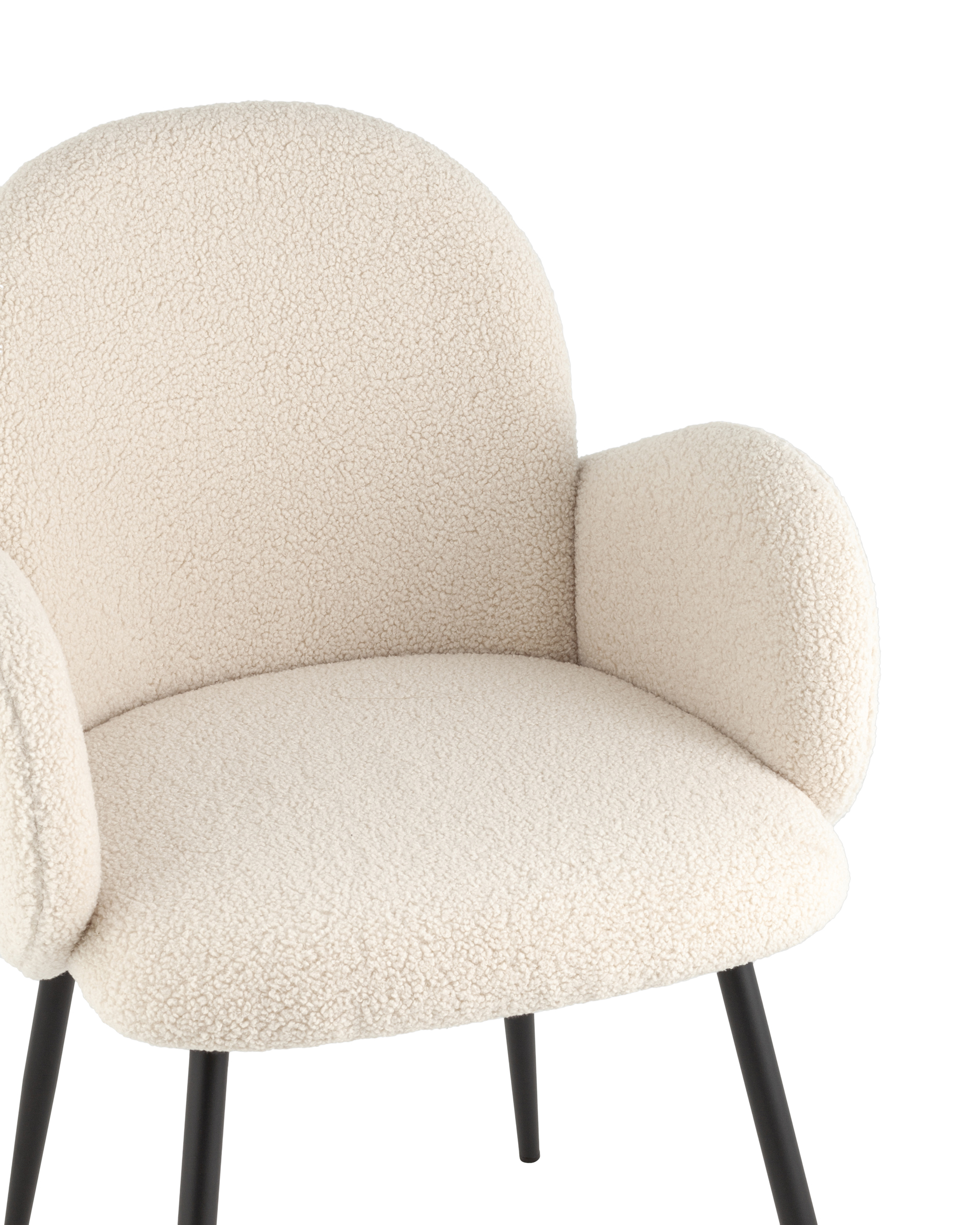 Стул обеденный Wave букле белый с подлокотниками ножки металл черные