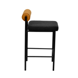 Стул полубарный Балла темно-серый сиденье букле, со спинкой в форме валика экокожа, ножки черные металл