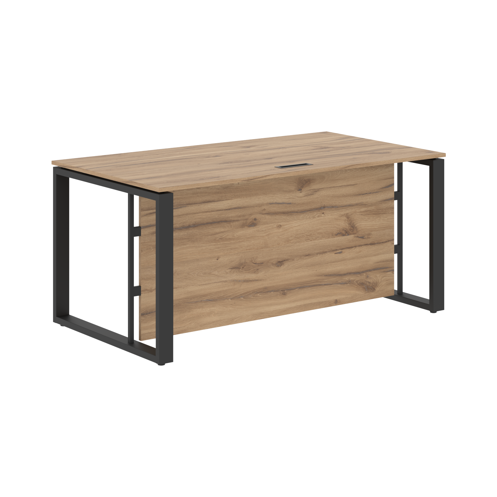 Две траверсы металлические крашенные из профиля трубы 40х25х2мм. Стол комплектуется высокой фронтальной панелью из ЛДСП т.18мм, h= 646мм с кромкой ПВХ т. 0,45мм.