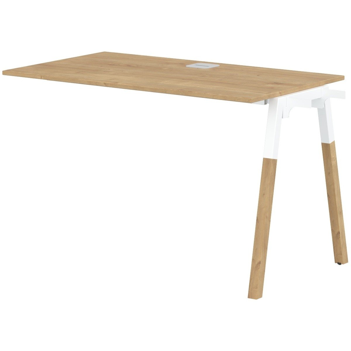 Столешница ЛДСП т.18мм. c кромкой ABS т.2.мм, комплектуется квадратной заглушкой кабель-канала по центру, 2-мя траверсами и промежуточной комбинированной опорой А-образной формы, верхняя часть из профиля трубы 40х40мм и нижняя часть из материала – бук; отделка – масло-воск Промежуточная опора с регулировкой внизу.