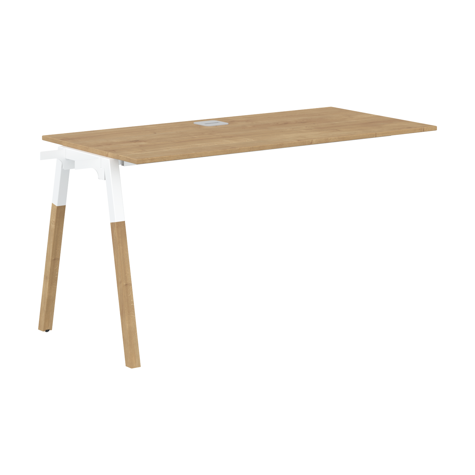 Столешница ЛДСП т.18мм. c кромкой ABS т.2.мм, комплектуется квадратной заглушкой кабель-канала по центру, 2-мя траверсами и промежуточной комбинированной опорой А-образной формы, верхняя часть из профиля трубы 40х40мм и нижняя часть из материала – бук; отделка – масло-воск Промежуточная опора с регулировкой внизу.