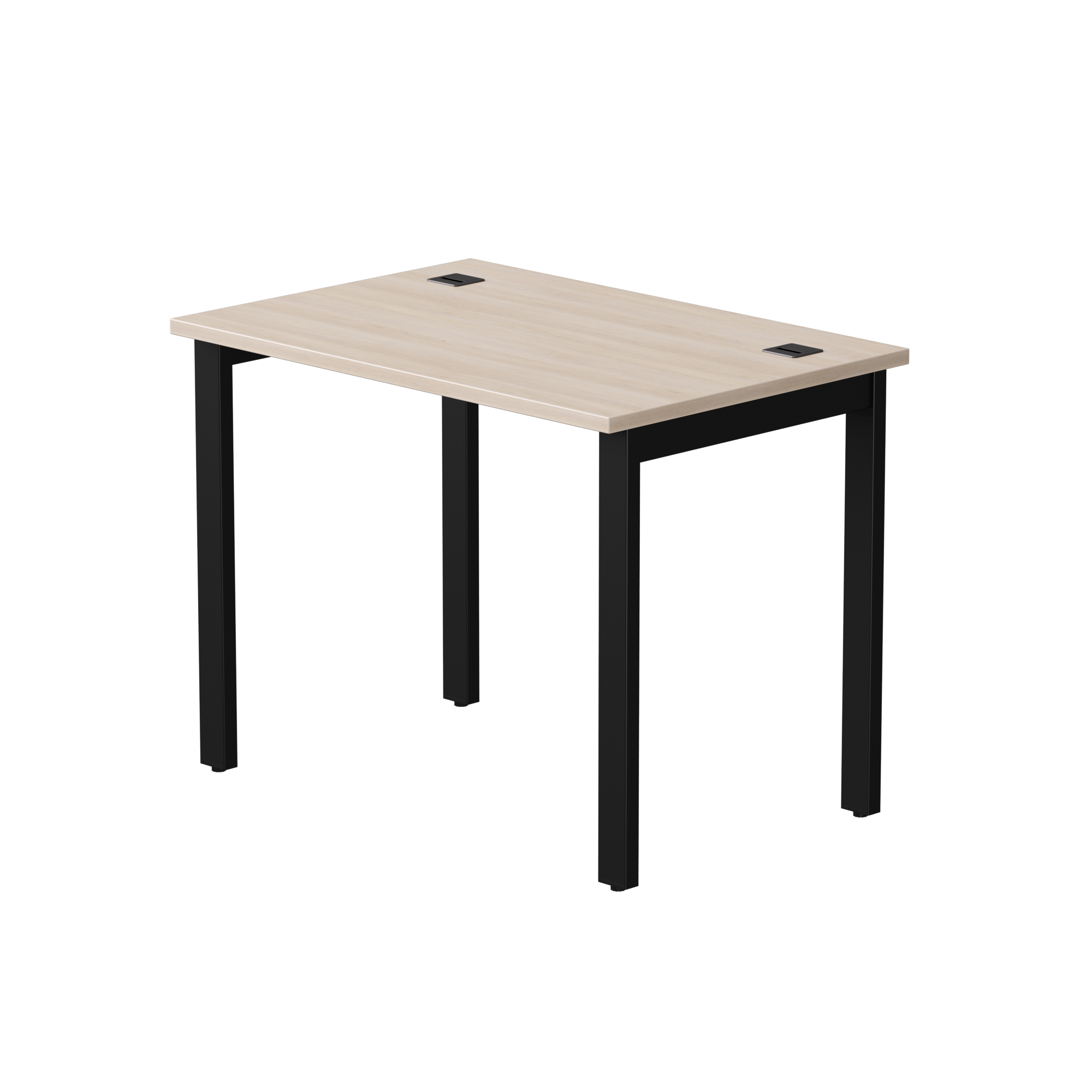 Металлокаркас обеспечивает прочность конструкции и стабильность стола, что особенно важно при длительном использовании и повышенных нагрузках. Черные опоры из металла подчеркивают стильный дизайн и делают стол устойчивым на любой поверхности. Кроме того, конструкция стола предусматривает удобные отверстия для проводов, что помогает поддерживать порядок на рабочем месте и избегать путаницы с кабелями.
