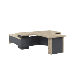 Опорная тумба высотой 550 мм, глубиной 520 мм. Тумба с 2 ящиками, нишей и отсеком с дверью-купе. Ящики плавного закрывания с доводчиками, со стильными металлическими боковинами в цвет корпуса, производства Hettich. Крышка и бок опорной тумбы выполнены из ЛДСП 50 мм, фасады ящиков и двери-купе - из ЛДСП 18 мм.