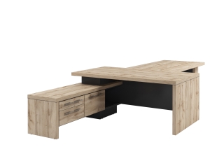 Крышка и бок опорной тумбы выполнены из ЛДСП 50 мм, фасады ящиков и двери-купе - из ЛДСП 18 мм.