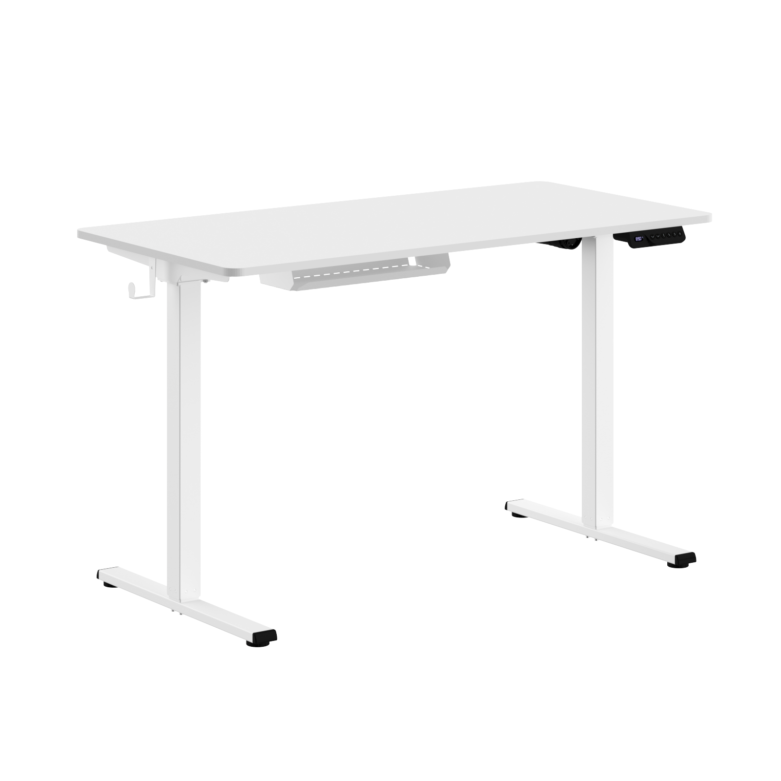 Столешница из ЛДСП т.16мм, кромка ПВХ т.2мм. Металлокаркас из профиля трубы, в основании 50х20х2мм, телескопические опоры 45х45х1,5мм и 50х50х1,5мм. Основание подстолья толщиной 2,5мм с траверсой толщиной 1,5мм. Стол комплектуется 2-мя метллическими крючками с толщиной металла 1,5мм и подвесным кабель-каналом. Металлокаркас комплектуется одним мотор-подъемом и пультом управления для регулировки высоты стола.