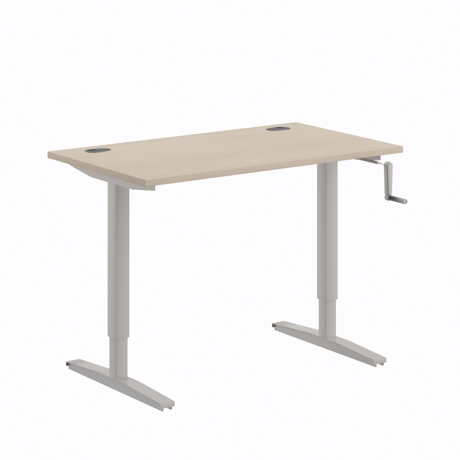 Столешница из ЛДСП т.25мм., кромка ПВХ т. 2мм. Комплектуется двумя заглушками кабель-каналов. Опоры - металлокаркас с механическим устройством изменения высоты. Металлокаркас из профиля трубы, в основании 675х60х45 т.3мм, телескопические опоры 50х50х2,5мм и 60х60х3,5мм. Основание подстолья толщиной 2,5мм с траверсой, толщина внешней трубы 2,5мм, внутренней - 2 мм.