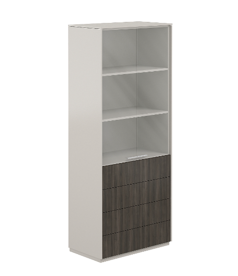 NZ-0312.GS.BT / Шкаф высокий со стеклом мат., 4 ящ., обвязка GS, фасады BT / 824х450х1976, обвязка GS, фасады BT, стекло матовое GLM