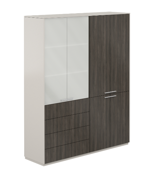 NZ-0301+NZ-0312.GS.BT / Шкаф высокий + Шкаф высокий со стеклом мат., 4 ящ., обвязка GS, фасады BT / 1624х450х1976, обвязка GS, фасады BT, стекло матовое GLM