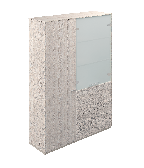 NZ-0303+NZ-0312.YN.YN / Шкаф для одежды 600 и Шкаф высокий 800 со стеклом мат., 4 ящ., обвязка YN, фасады YN / 1424х450х1976, обвязка YN, фасады YN, стекло матовое GLM