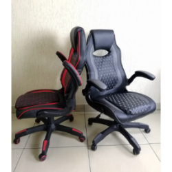 Кресло Barneo K-37 черная кожа/красные вставки, черная кожа/серые вставки