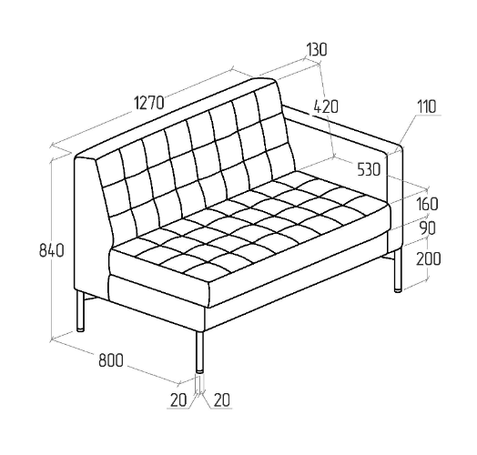 Наполнитель подлокотников - ППУ марки ST 2536, синтепон 300 гр